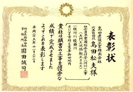 さいたま県土整備事務所長より優秀現場代理人表彰、