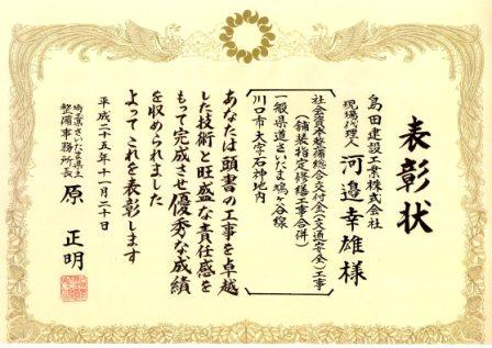 総合治水事務所長より優秀建設工事施工者表彰をいだきました。