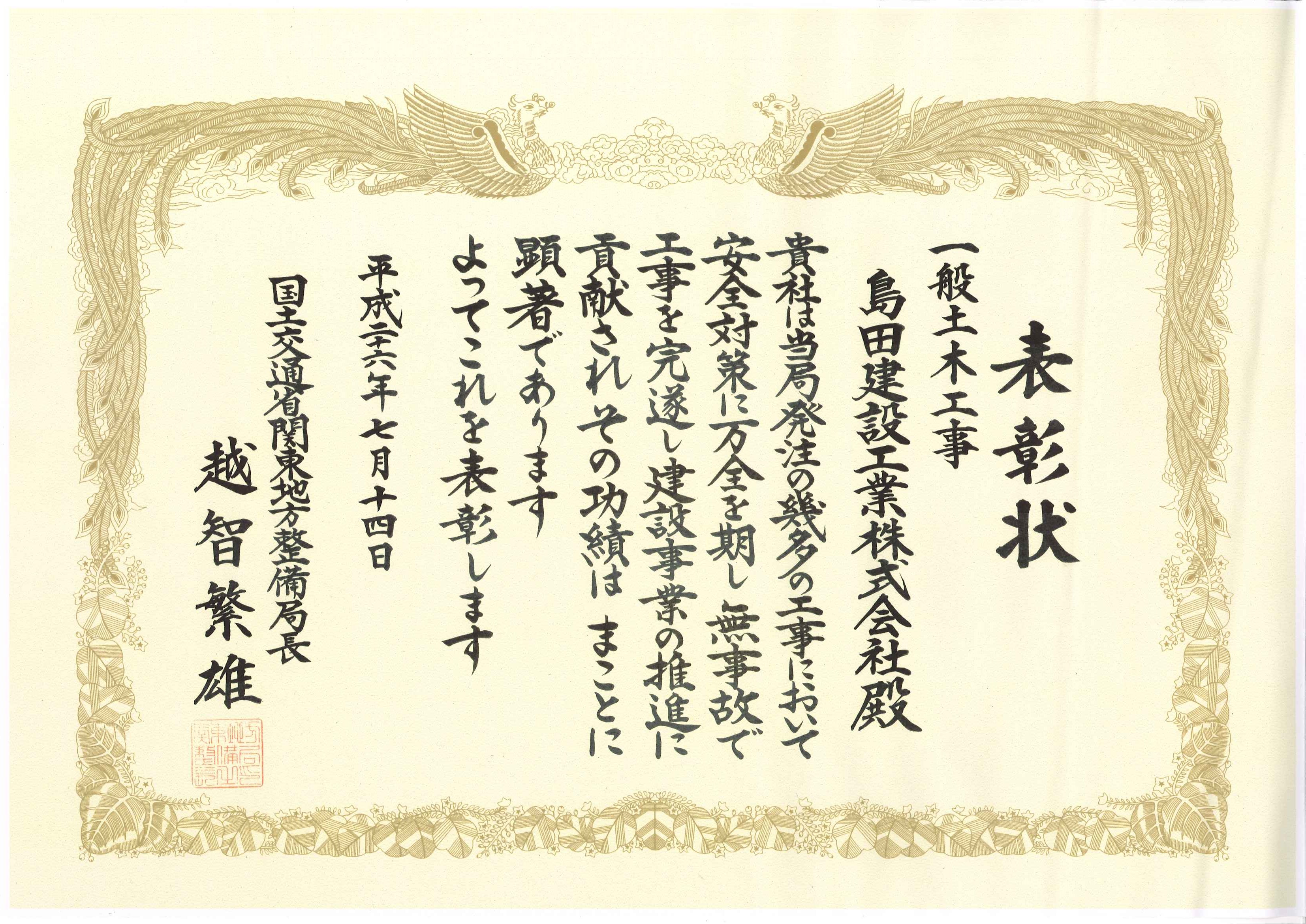 国土交通省関東地方整備局長より安全管理優良請負者表彰をいただきました。